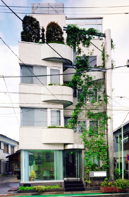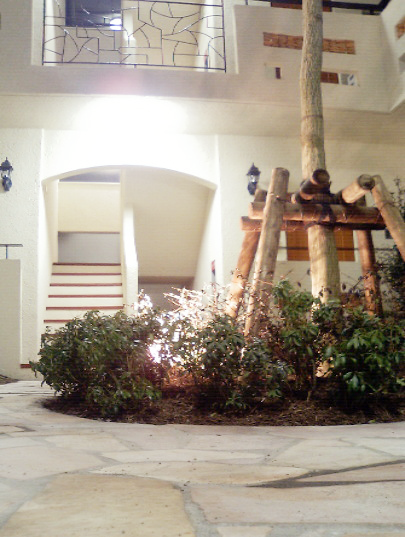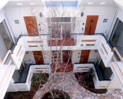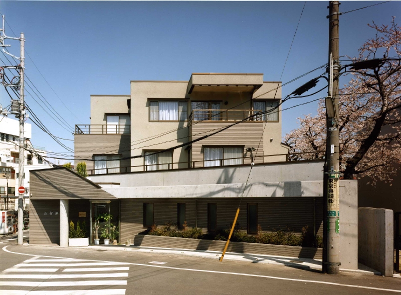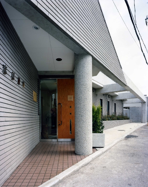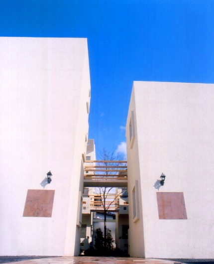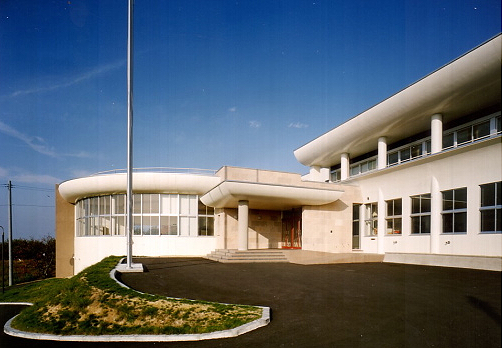蔵王の麓にこの建物、山形厚生看護学校があります。13号バイパスの物産会館より東の山を望めば、山の中腹に見ることができます。デザインをするにあたって心掛けたのはやさしさ。清楚で心やさしい看護婦・看護士になってほしいという願いからです。外観の特に玄関周りの曲線と、壁に貼られたインド砂岩の調和を見てください。